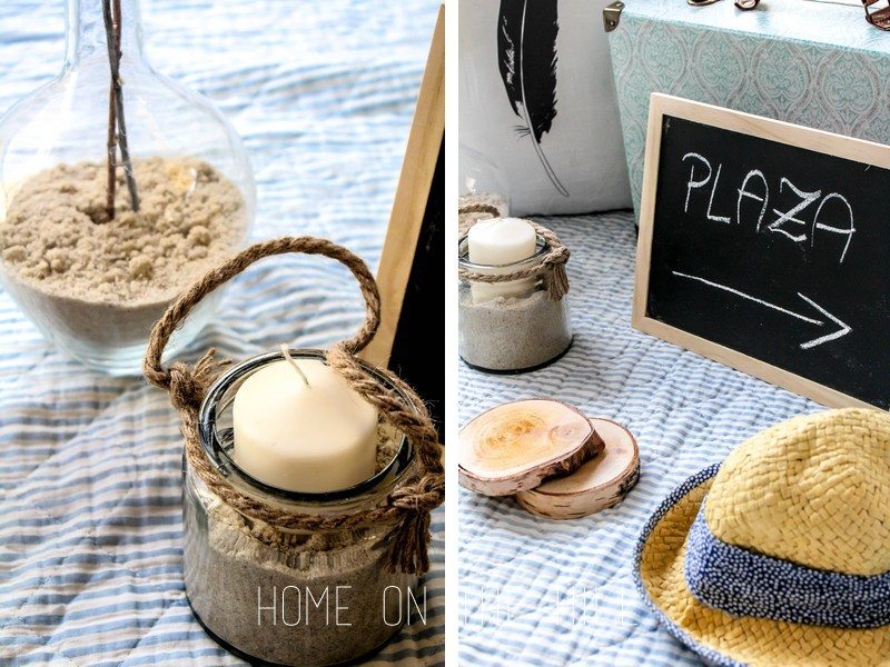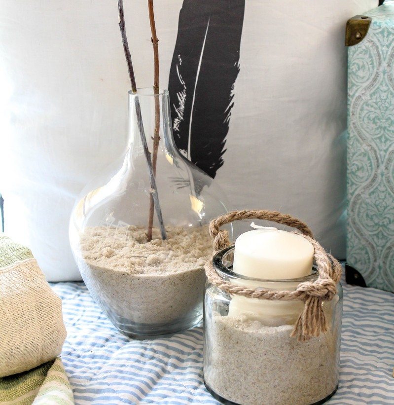 Mimo tego, że tak bardzo kocham morze, to jednak do tej pory do domu nigdy nie wprowadzałam za wiele marynistycznych akcentów. Podobają mi się, widziałam mnóstwo pięknych inspiracji, mimo to czułam, że to po prostu nie dla mnie. Ale z uwagi na to, że ostatnio pogoda nie rozpieszcza, oprócz tego choróbsko się nas trzyma od dłuższego czasu, zatęskniłam za plażą i postanowiłam się trochę zabawić…. Potrzebowałam tylko odrobiny złocistego piasku, szklane naczynia typu lampion, wazon i takie o to proste dekoracje mi z tego wyszły: