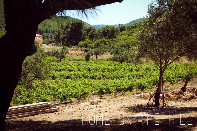 Jedne z tych win jakie możecie zobaczyć na zdjęciach pochodzi z cudownego miejsca. Kiedy jechaliśmy górską serpentyną, przepiękną drogą gdzie można było podziwiać widoki co aż dech zapierały, rozglądając się wokół nagle zobaczyliśmy znak prowadzący do lokalnej winnicy. Nie zastanawiając się ani chwili od razu postanowiliśmy tam skręcić. Naszym oczom ukazał się niezwykle malowniczy widok. Piękny, duży dom w kolorze rozgrzanego piasku, a wokół same góry i pola pełne winorośli. Przywitała nas niezwykle piękna, eteryczna Greczynka z burzą brązowych włosów i serdecznym uśmiechem. Energicznie zaprosiła nas do środka. Przy samym wejściu jej posiadłości rosło olbrzymie cytrusowe drzewo, ziemia była spieczona słońcem, pachniało wokół obłędnie, dalej zaś było jeszcze piękniej. Na jej podwórzu rosło trzystuletnie, potężne drzewo oliwne, stał stary „stół”, który tak naprawdę wcześniej służył do wyciskania soku z winogron, a nad nim górował malowniczy baldachim stworzony z winorośli, który świetnie osłaniał przed słońcem. Już widzę te leniwe popołudnia kiedy to każdy odpoczywający tam bez pośpiechu zrywa sobie kiść winogron jako przekąskę. Gospodyni oprowadziła nas wokół, z olbrzymią pasją zaczęła opowiadać o różnorodnych odmianach winogron, słowami kreśliła ich smak, aromat, to jak wyglądają idealnie dojrzałe owoce pod koniec sierpnia. Pokazała nam jeden z budynków, który musiał zostać całkowicie odbudowany przez jej rodziców bo wcześniej uległ zniszczeniu po wielkim trzęsieniu ziemi jakie miało miejsce w 1953 roku, kiedy to ucierpiało mnóstwo budynków, zabytków. Kataklizm który przyniósł jeden wielki chaos i zniszczenie.